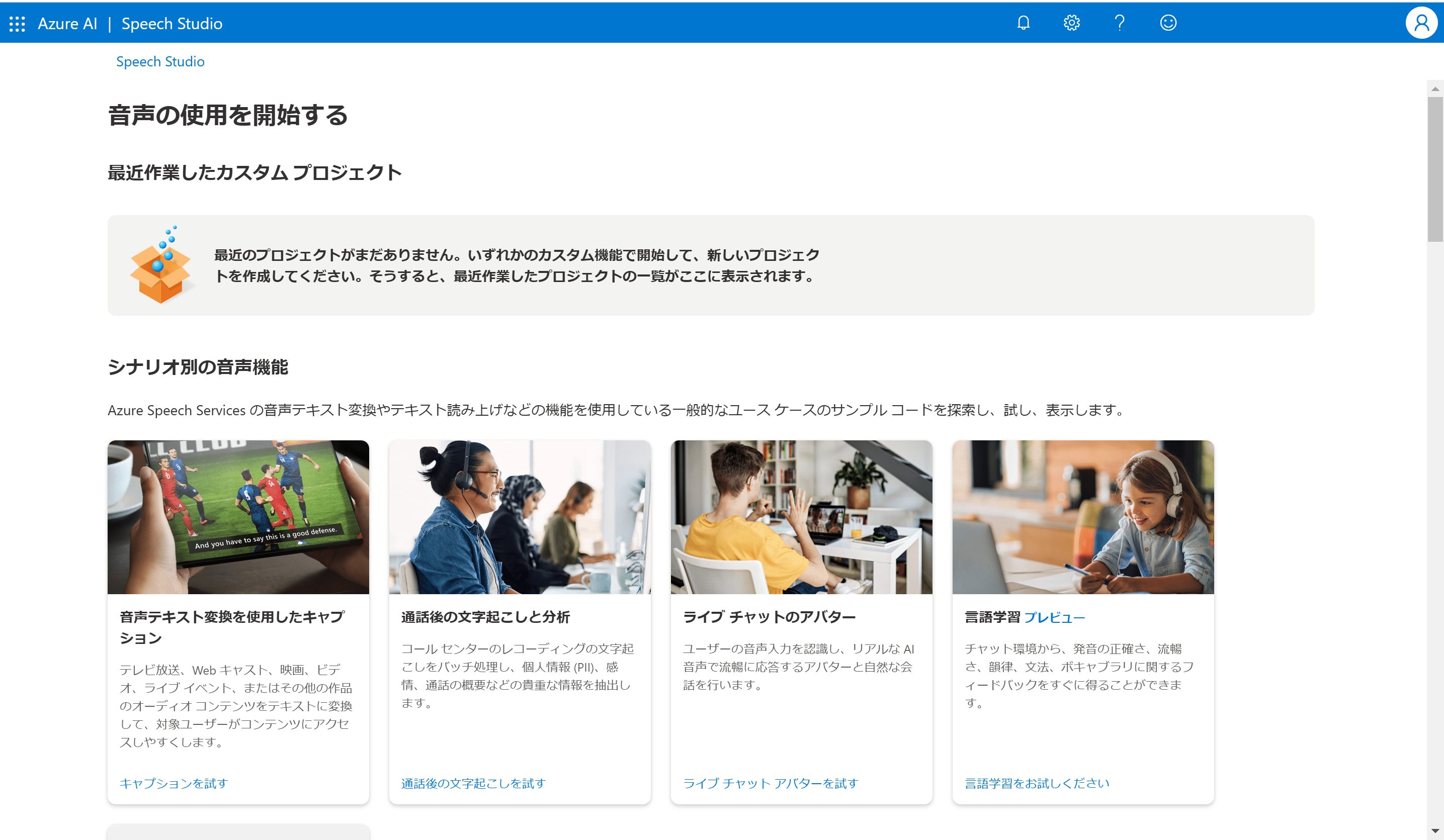では早速Speech Studioにアクセスしてみましょう。