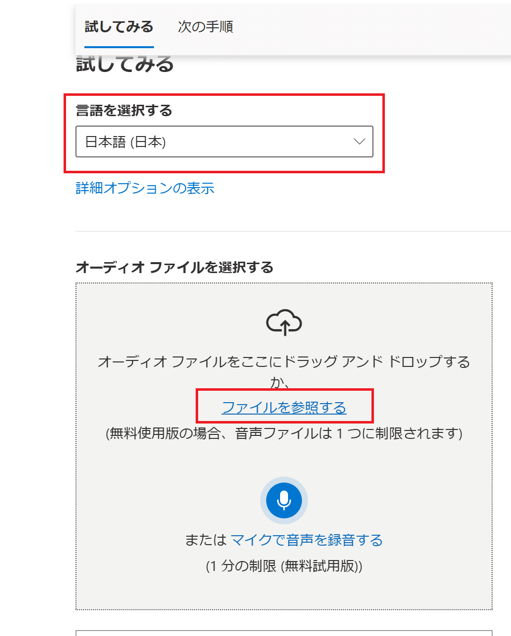 ここでは割愛しますが、「マイクで音声を録音する」と、まさに機能名通りリアルタイムで文字起こししてくれますし、画面にも記載されている通り1分以内であれば無料なので、試してみてもらえればと思います。