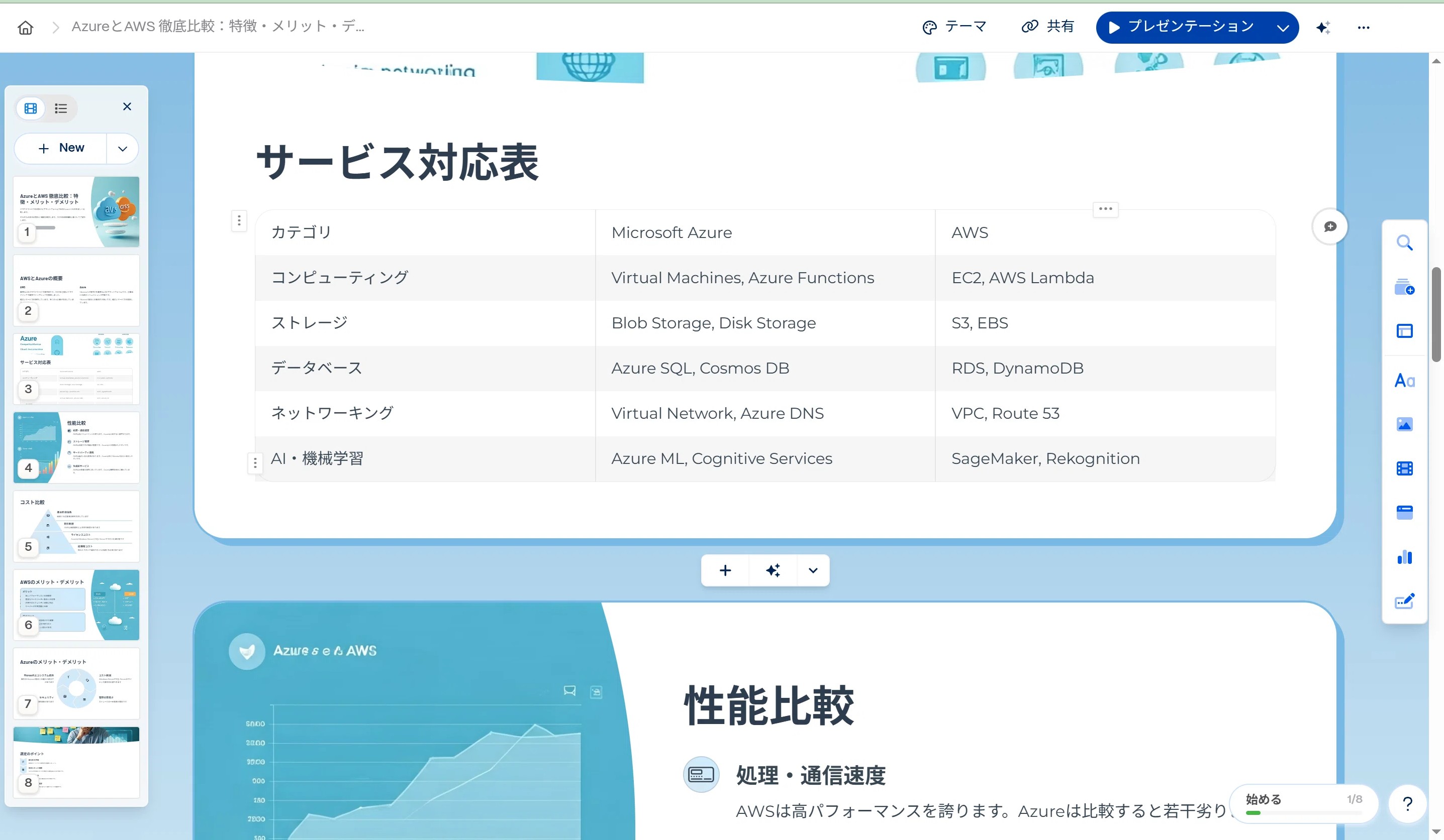 直前の画面の「生成」をクリックしてしばらくするとプレゼン資料が出力されます。