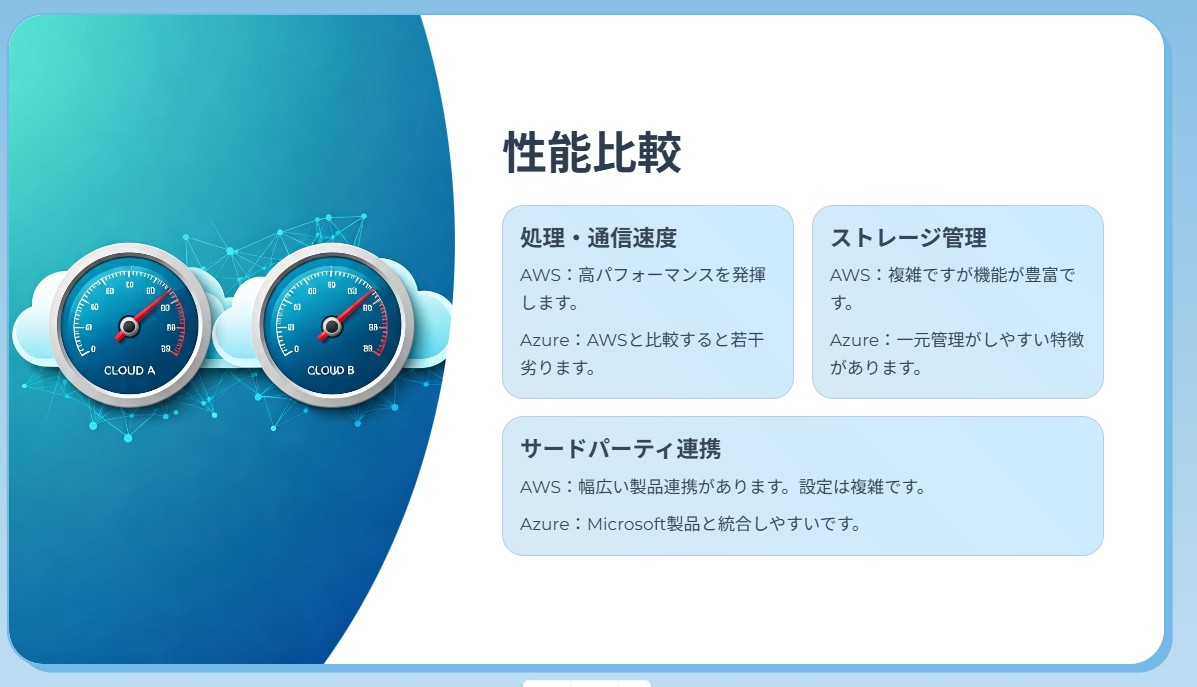 「AzureとAWS、それぞれの特徴や、メリット・デメリットを説明してください。必要に応じて表形式での説明もお願いします。」