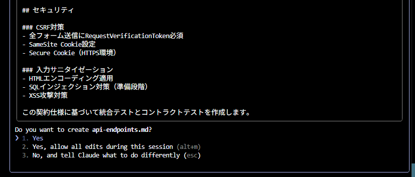 このコマンドを受けてまずは仕様書の作成を実行します。