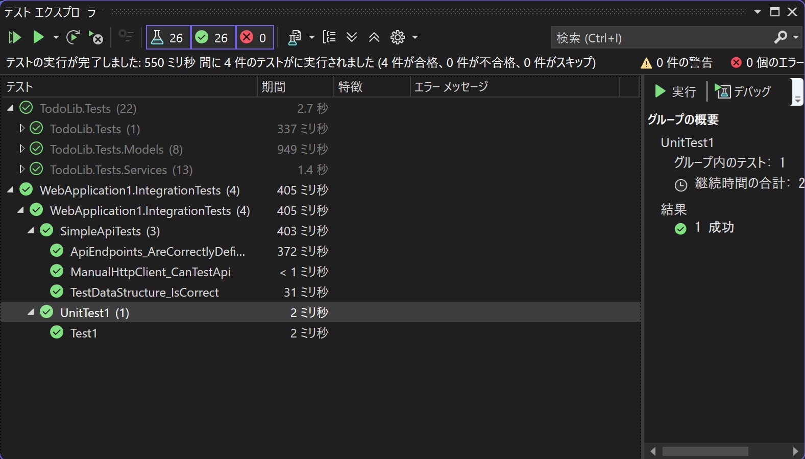 ちなみに以下のスクリーンショットはVisual Studio 2022のテストエクスプローラーの画面です。