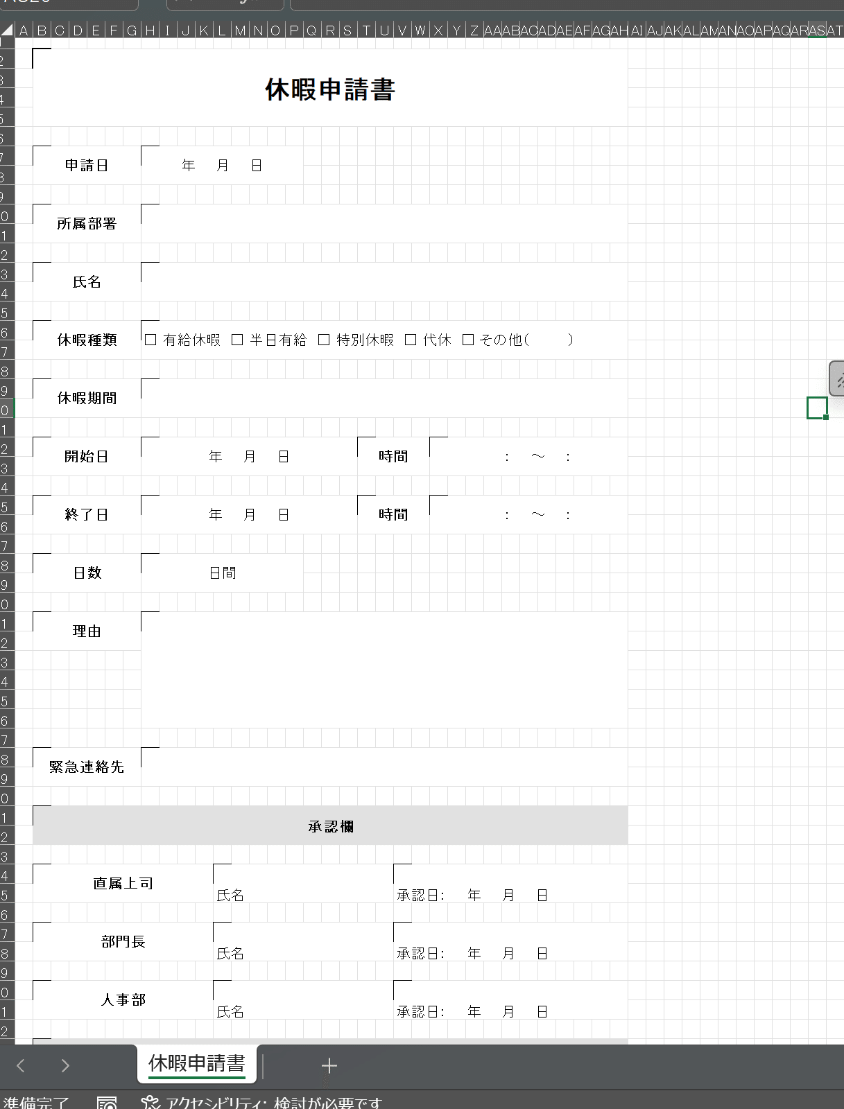 同じく休暇申請書でいきたいと思います。