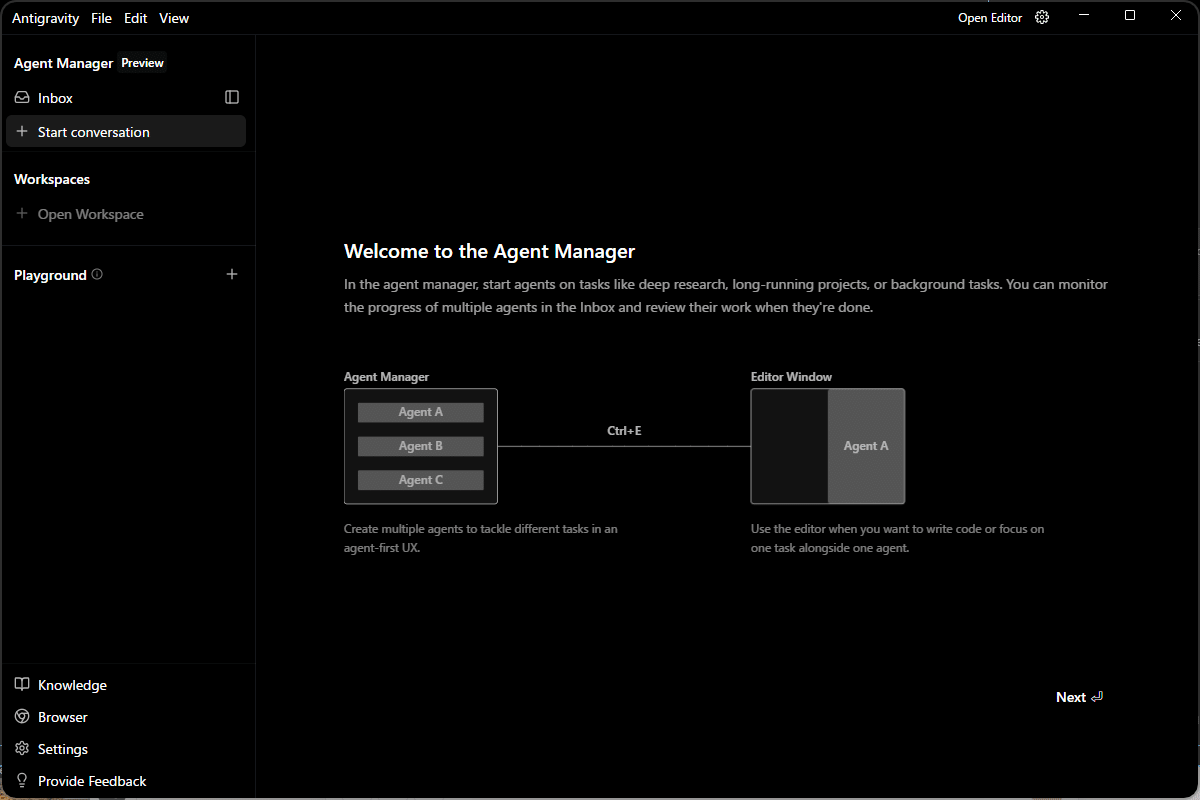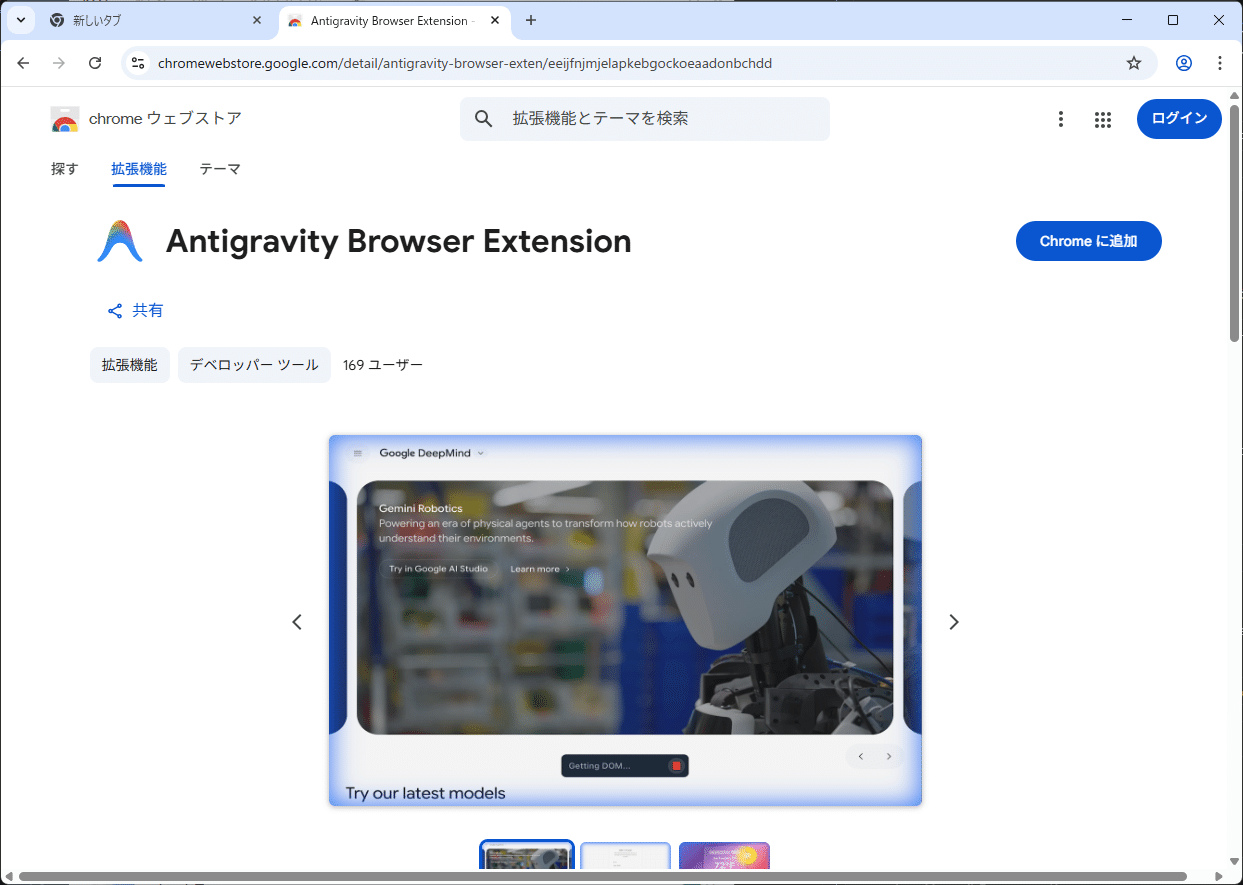 今回はちょっと違った動きとなりまして、先にAntigravityの大きな特徴の1つであるAntigravity Browser Extenstionについて説明します。