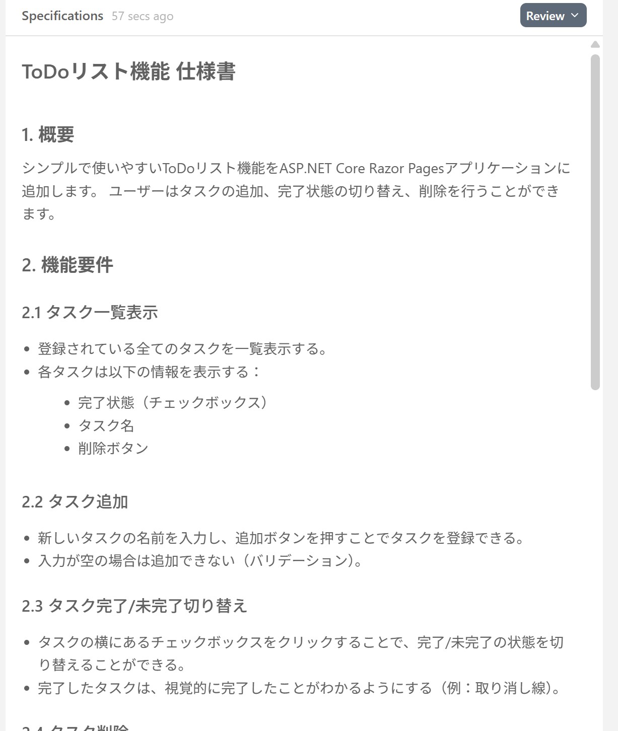 この後は実装が完了し、他のAIツールであれば起動して終了となります。