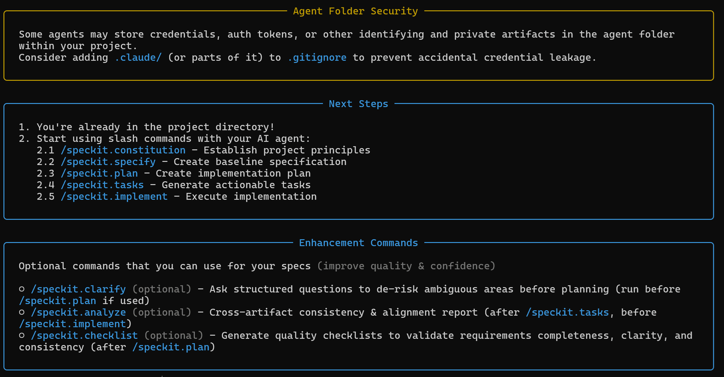 そして最新のバージョンにおいてはコマンド名が変わり、「/speckit.~」のように必ず先頭に「/spectkit.」が付く形に統一されました。