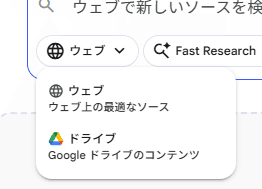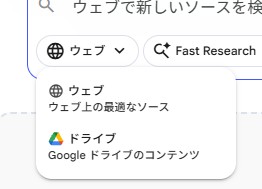 「新しいソースを検索」の「ウェブ」を選択するとウェブから、もしくはGoogleDriveからかを選択できます。