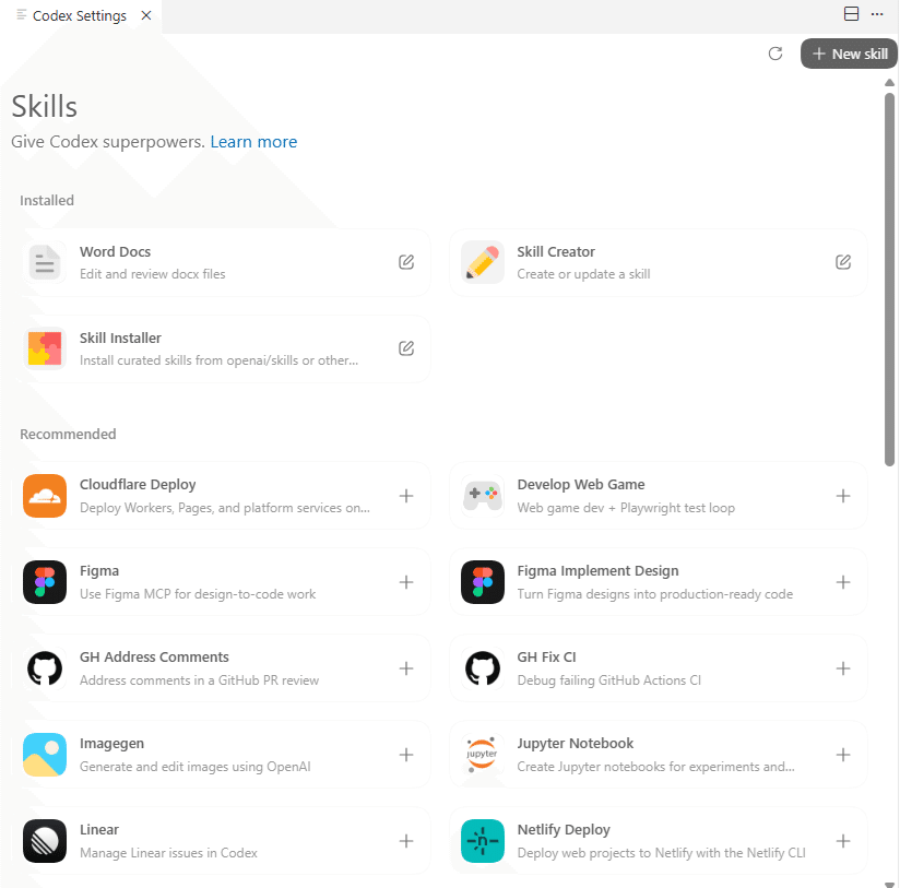 普通であれば所定の位置にファイルを配置するというのがエージェントスキルの設定方法なのですが、Cursor+Codexではまたちょっと異なる設定方法があります。