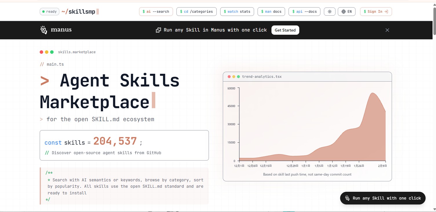 1月中旬頃に上記のサイトを見たときは6万程度でした。現在2026年2月14日、上記スクリーンショットでは20万超えてますね。。この数字からでもスキルの爆発的な普及が見て取れます。