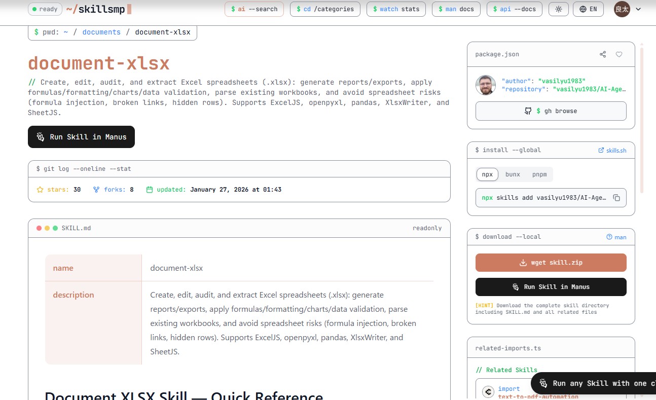 そして、各スキルをクリックすると以下のような画面になりますのでここからスキルのZIPファイルがダウンロードできます。