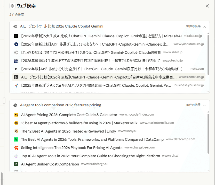 上記画面の右側、「コンテキスト」ー>「Web search」をクリックすると以下のように更に詳しくデータ元が表示されます。