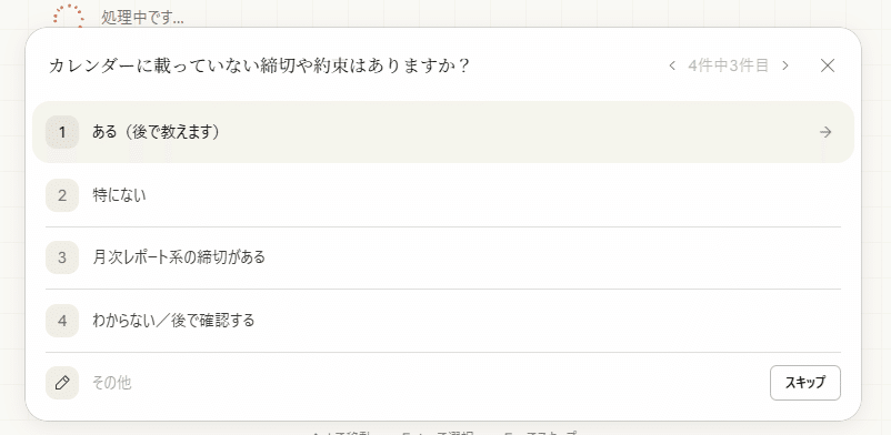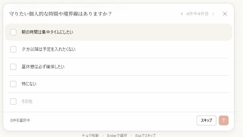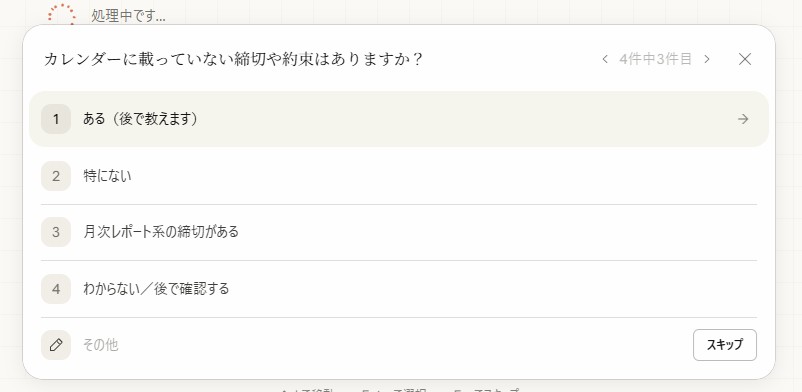 まずは「特に達成したい目標や優先タスクはありますか?」