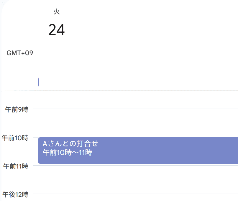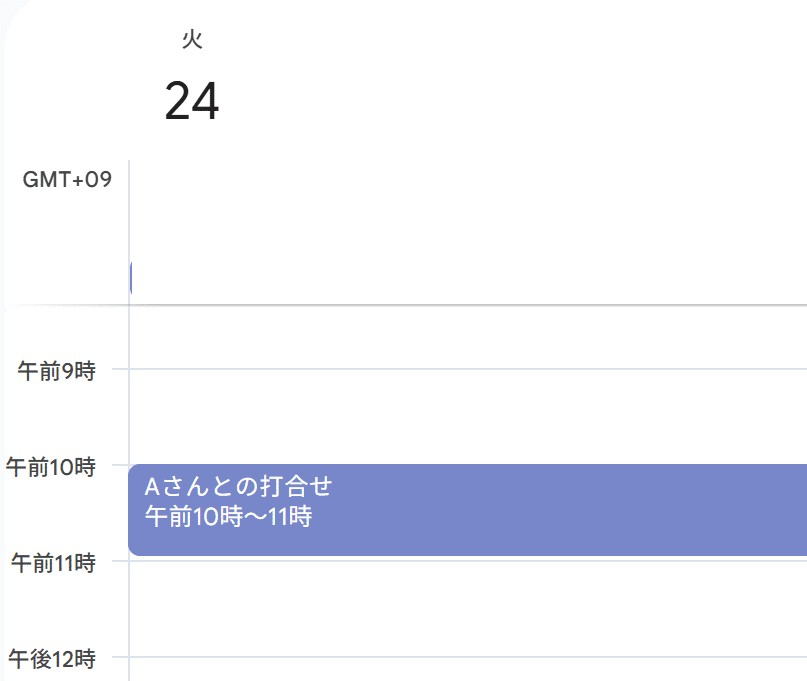 以下は実際に「2/24、10~11時に「Aさんとの打合せ」を入れて」と依頼した例です。Gmailもこれで同様に操作が行えますが、くれぐれも操作・指示にあたってはご注意ください。