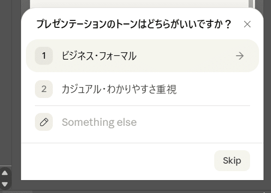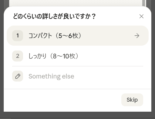 そうしますと最初に試したときと違った、かつ興味深い動きになりましたので共有しますと以下のような選択肢が出てきます。