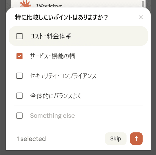 そして、もう1つ最後に以下の質問が出てきますのでそれぞれ希望に応じて回答します。選択肢にないものは「Something else」で自由に文章を入力できます。