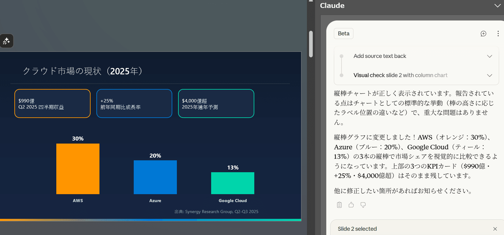 そして、MicrosoftがAgentmodeを発表した際の記事にはPowerPointも近々発表ということで期待しておりましたが、一足先にAnthoropicがPowerPoint版を発表してくれました。