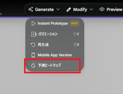 上部メニュー「Generate」から「予測ヒートマップ」を選択します。