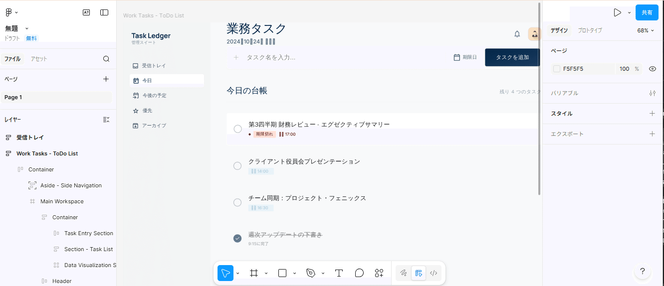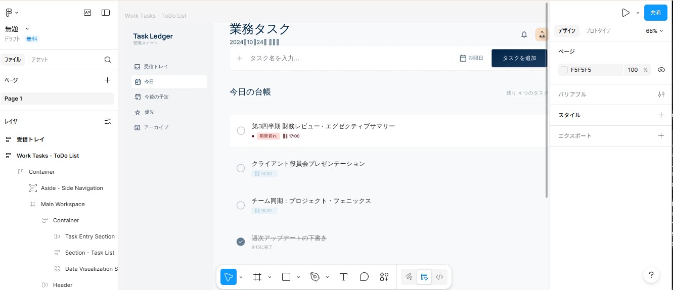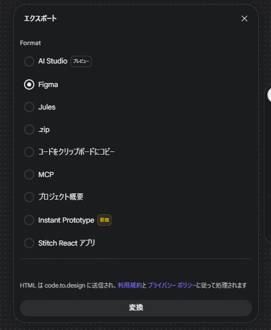 次に「Figmaにコピー」。こちらはクリップボードに画面デザインがコピーされ、Figmaを開いてペーストすれば簡単にFigma上にStitchで作成した画面デザインが貼り付けられます。