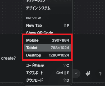 モバイル、タブレット、デスクトップ(PC)といった画面サイズも設定できますのでPencil.devよりもプログラム・実装寄りのデザインツールと言えます。