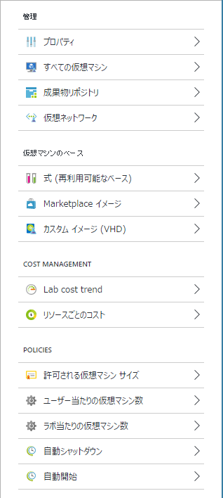 下に管理ポータルに表示さえれるDevTest Labsのキャプチャを貼り付けておきます。